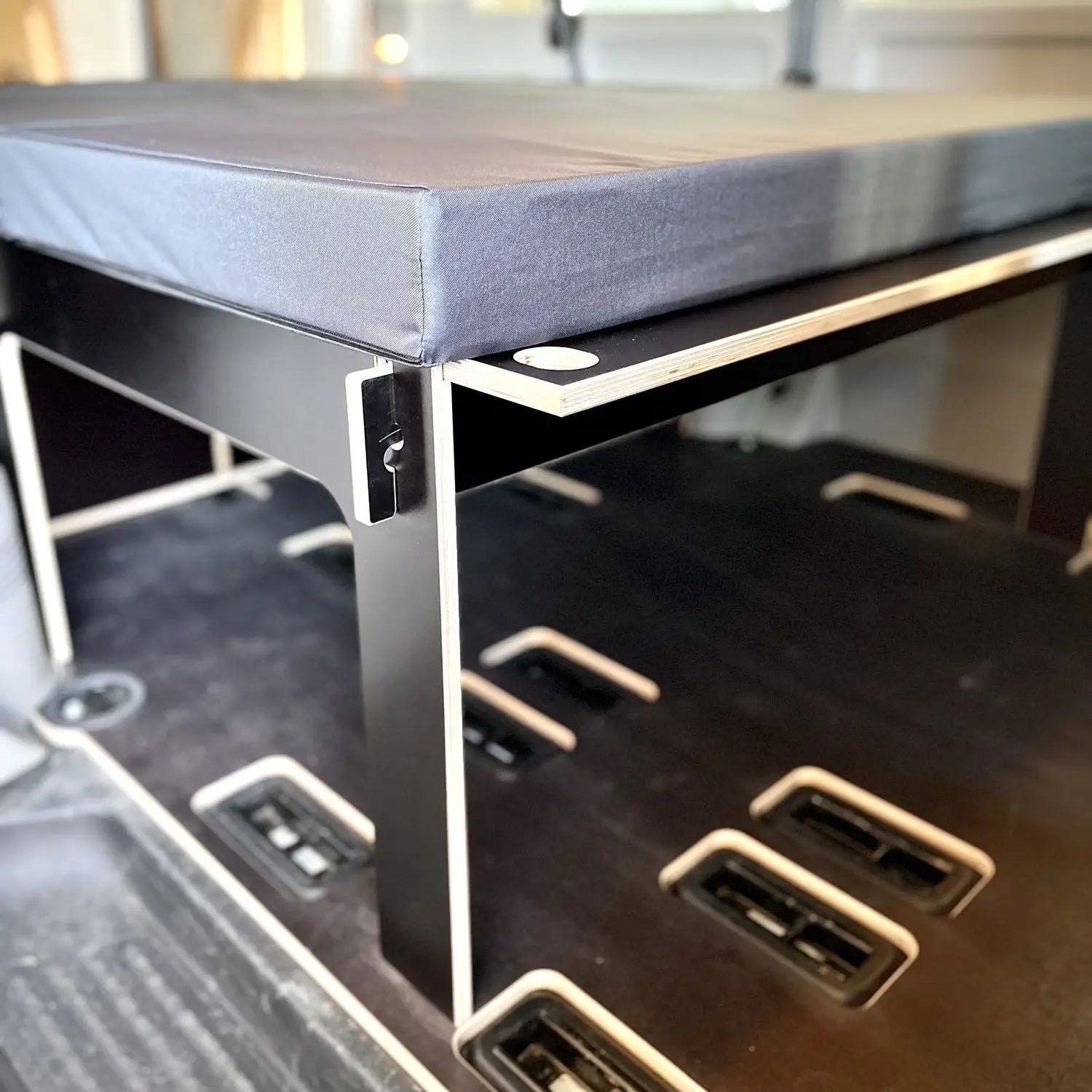 Neben der Rücksitzbank oder den Euroboxen bieten wir auch ein Unterbau-Stecksystem als Auflage für den Lattenrost an.